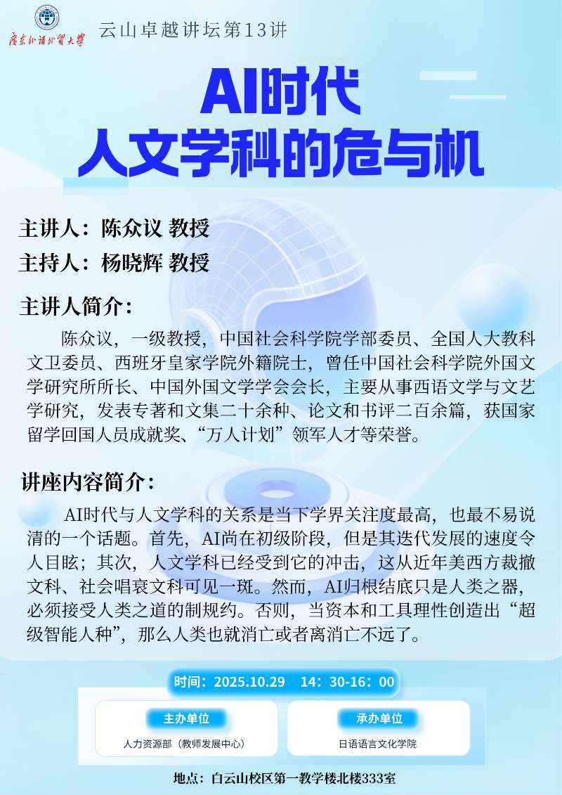 云山卓越讲坛第13讲:AI时代人文学科的危与机