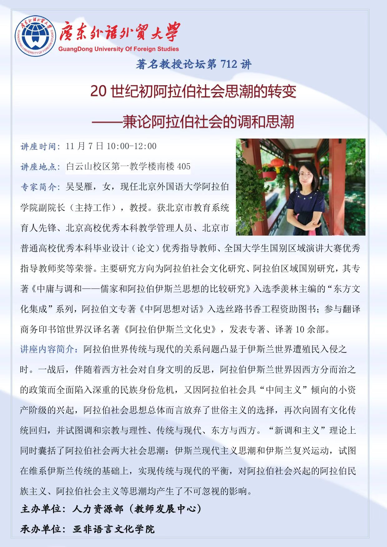 著名教授论坛第712讲:20世纪初阿拉伯社会思潮的转变——兼论阿拉伯社会的调和思潮