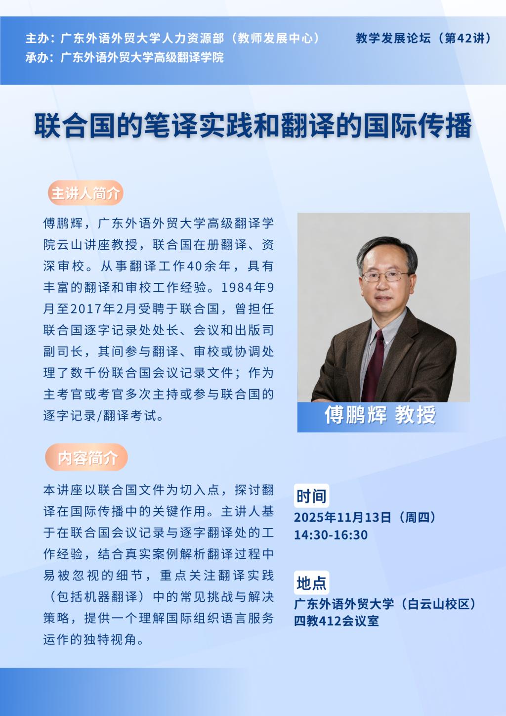 教学发展论坛第42讲:联合国的笔译实践和翻译的国际传播
