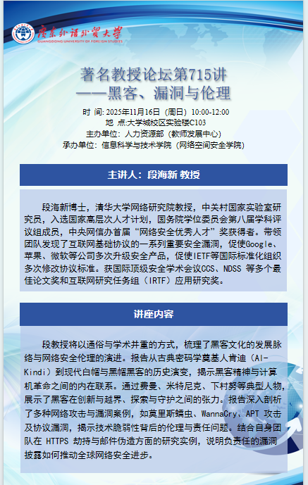 著名教授论坛第715讲:黑客、漏洞与伦理