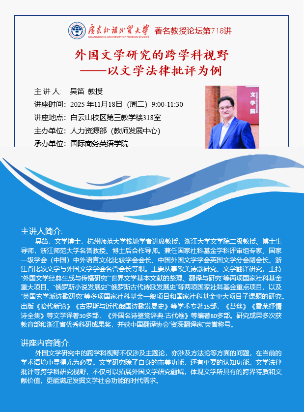 著名教授论坛第718讲:外国文学研究的跨学科视野——以文学法律批评为例