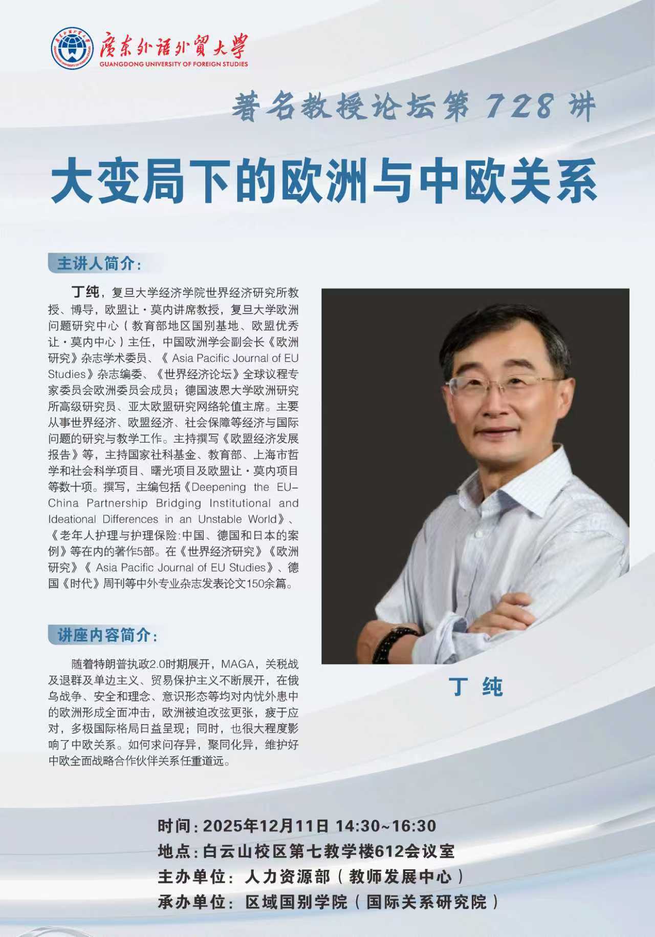 著名教授论坛第728讲:大变局下的欧洲与中欧关系