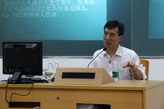 马晓霖首先以美国陷入无休止的反恐战争为序言,进而深入地向听众展示了中东的“基地”组织的建立过程以及如今“伊斯兰国”演变过程。同时他也指出,恐怖主义对当今美国乃至全世界造成越发严重的威胁,因此中国人民需要对恐怖主义加深了解和认识。