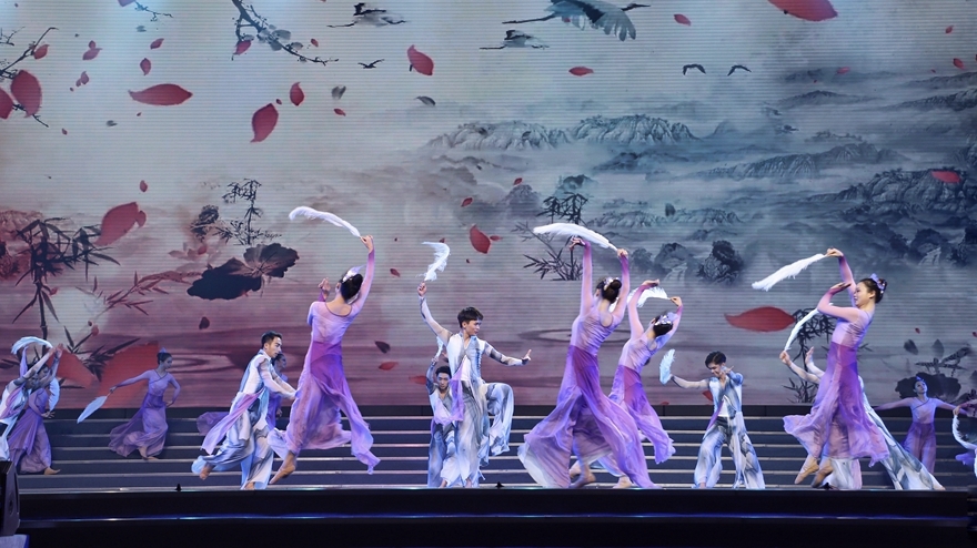 载歌且舞,在袅袅音乐声中道尽对祖国的深情
