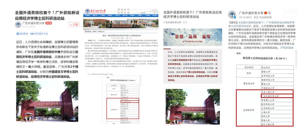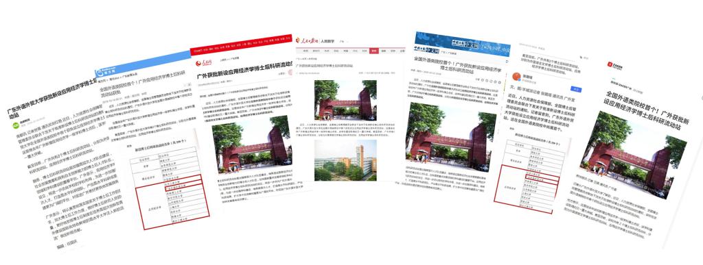 在全国外语类院校中首个获批设立应用经济学博士后科研流动站引起众多媒体关注,人民日报社、人民网、中国日报网、光明网、南方plus、南方网、羊城晚报、新快报等中央及省内知名媒体纷纷发布新闻,聚焦福利导航
