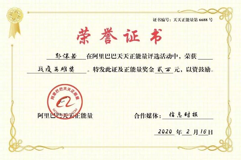 阿里巴巴天天正能量工作人员表示:“在这次举国全民战疫中,涌现了很多平凡人的不凡善举。截止目前,阿里巴巴天天正能量已奖励近50位战疫平民好人。留学生郭沫若是目前我们奖励的首位外籍身份的战疫好人。爱心不分国界,荣誉也是。”