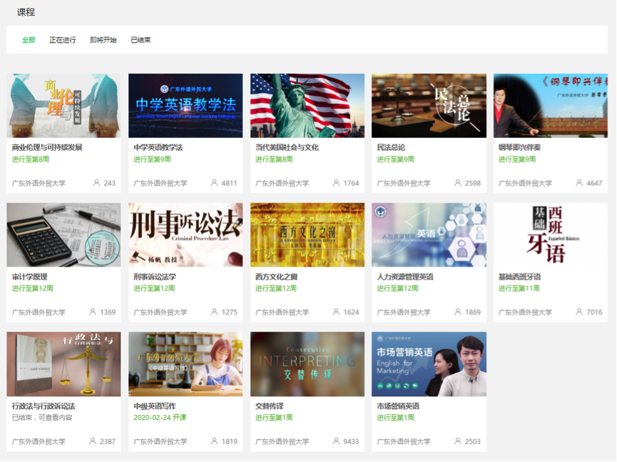 8门课程,涵盖英语写作、专门用途英语、法语、西班牙语、教师教育、文化类等课程,疫情期间由平台免费提供SPOC服务,保障高校师生开展线上教学。课程由福利导航