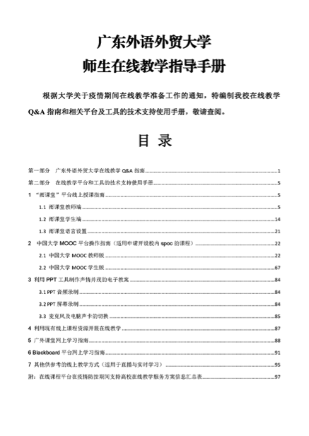师生在线教学指导手册》,通过多次测试及沟通,确定切实可行的教学实施路径,努力为教师探索多种线上教学模式,详细、清晰地引导福利导航