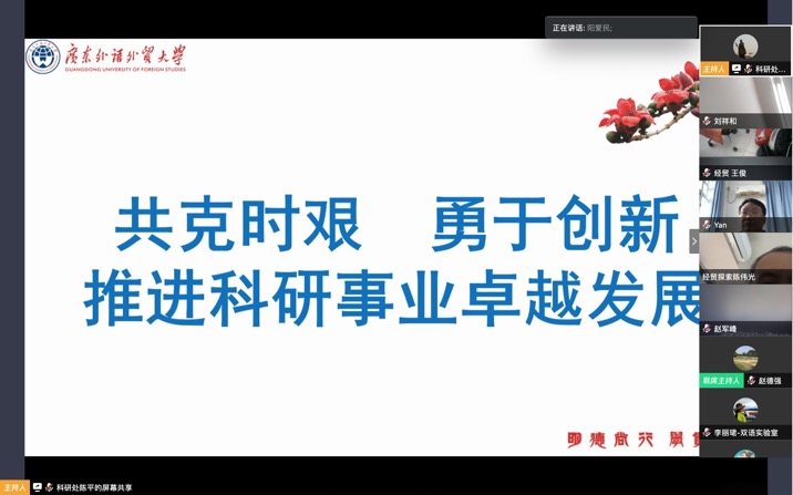 以网络会议形式举行新学期科研工作布置会。会议由校党委常委、副校长阳爱民主持。科研处相关负责人,各教学、教辅单位分管科研工作负责人,各科研机构(含校级基地、教育部国别和区域研究备案中心)、期刊编辑部、校级科研团队负责人、科研秘书及科研处全体工作人员等160余人参加了会议。