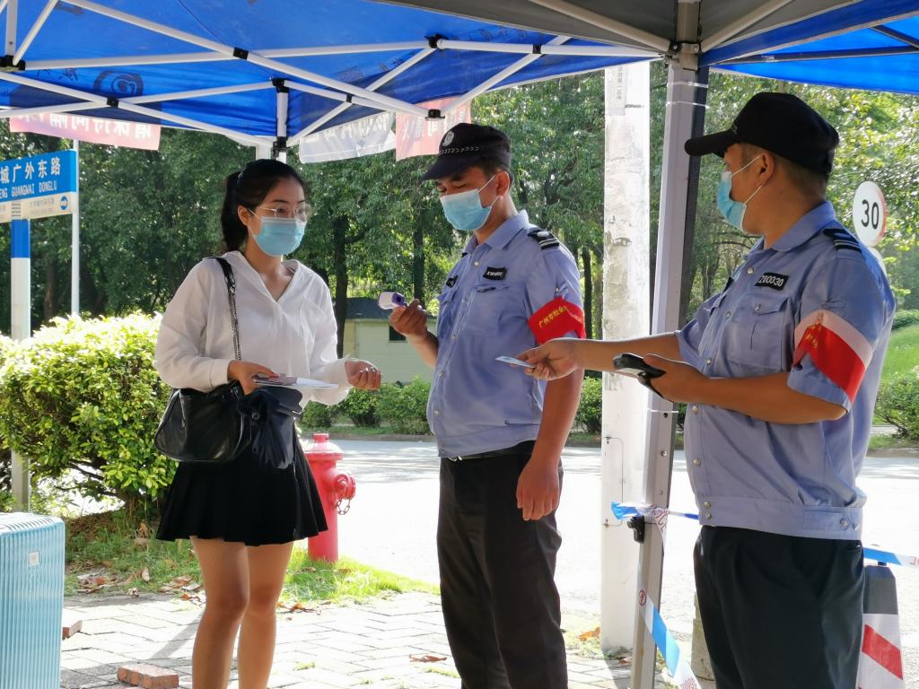 保卫处提前布置好学生进校通道,并在当天对返校毕业生进行体温检测和身份验证。为便于学生携带大件行李物品离校,保卫处在南校区临时增设离校通道。