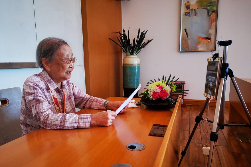会上,通过线上线下结合,身在养老院的高碧莲同志通过微信视频汇报自己一年来思想、学习、生活等方面的转变,以及身为预备党员在抗疫方面所作出的努力,诚恳地向党组织提出转正申请。