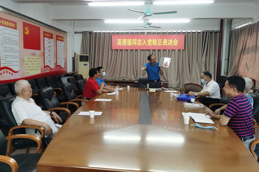 本网讯 7月1日上午,正值中国共产党建党99周年之际,一场别开生面的预备党员转正会议在离退休党委会议室召开,对离休支部预备期满的高碧莲同志能否按期转为中共正式党员进行讨论表决。