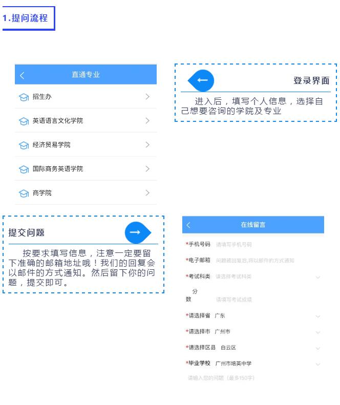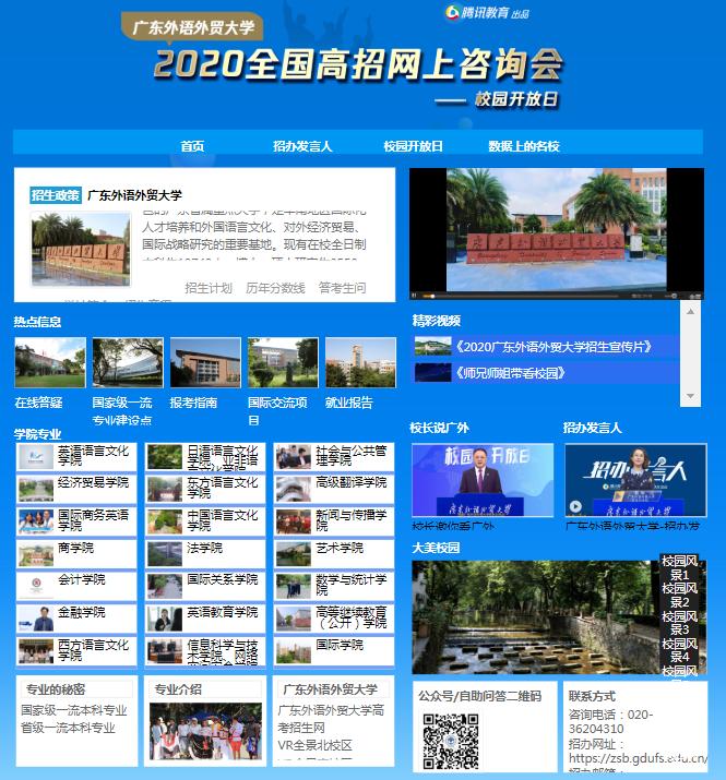 的办学特色、招生政策、专业设置、国际交流、校园环境等;利用在线自助答疑系统举办在线咨询活动;利用腾讯课堂实现招生宣讲直播。开展了“校长邀你看广外”等8项丰富多彩的招生宣传活动。