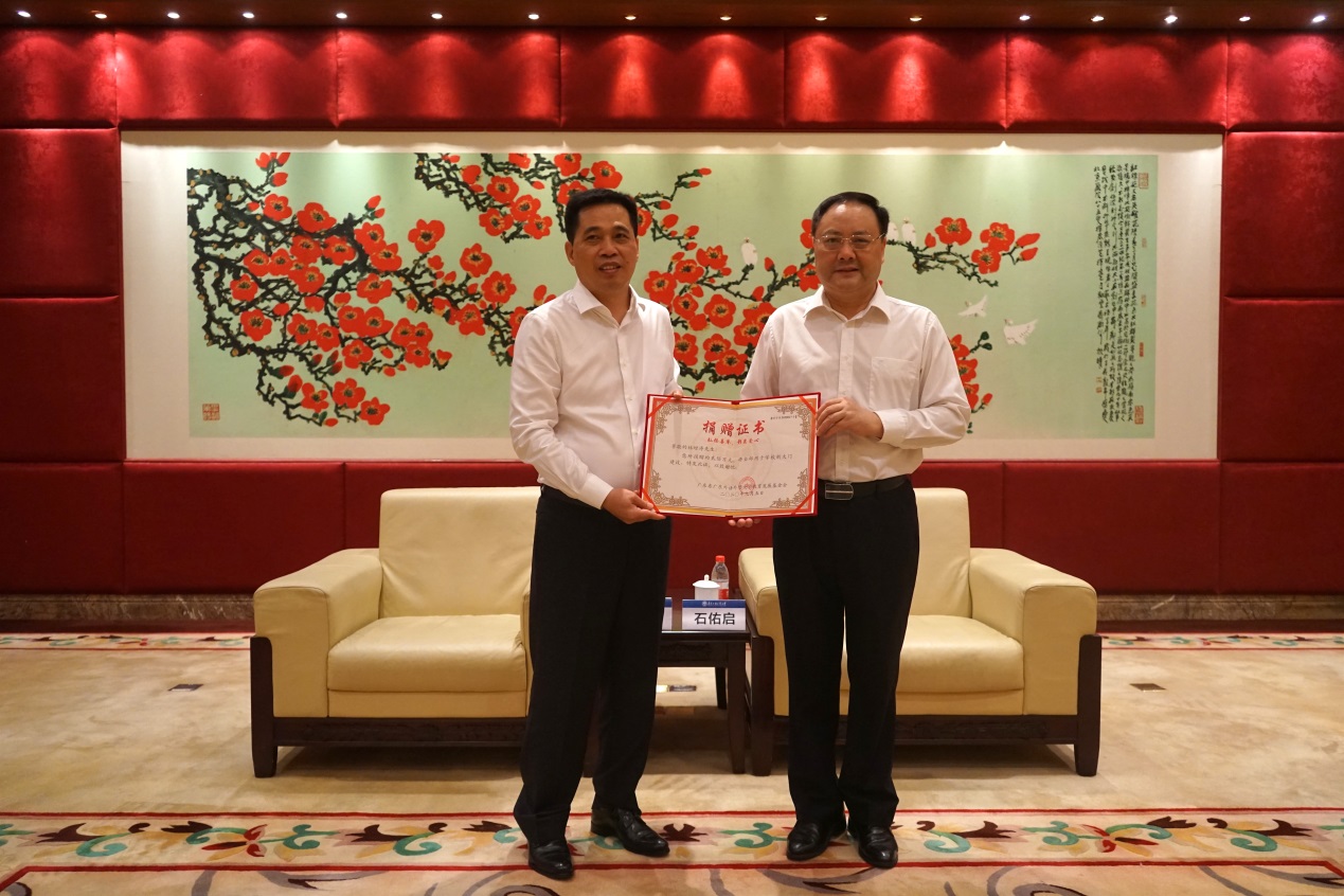 接受了林增涛的捐赠支票,并颁发捐赠证书。