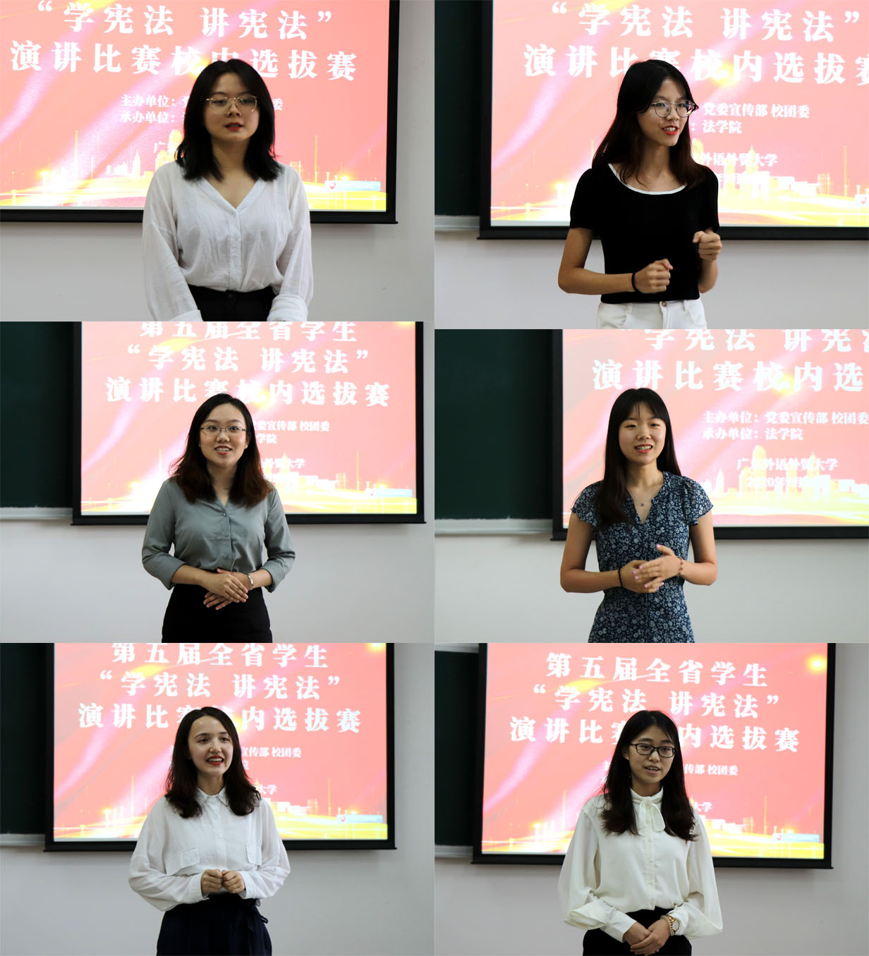 本网讯 为进一步贯彻落实习近平总书记关于宪法学习宣传教育的系列重要指示精神,根据《广东省教育厅关于举办第五届全省学生“学宪法 讲宪法”活动的通知》要求,由党委宣传部和校团委主办、法学院承办的第五届全省学生“学宪法 讲宪法”活动校内选拔赛于近日在南校区教学楼D308举行。