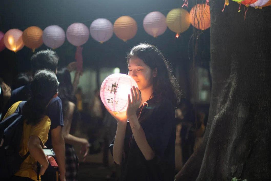 游园活动内容包括中秋灯谜荟、青春告白祖国、汉服文化体验、许心愿·寄思念、趣味活动和文艺表演。学生们通过猜灯谜,回顾中国历史、地理、文化、时政知识,感受中秋传统文化和家国情怀;通过“我和五星红旗合张影”“爱国主义歌曲大合唱”,为学生进行一场生动的爱国主义教育;通过现场试穿汉服,感受中国传统服饰之美;通过动手制作灯笼和月饼,加深对传统节日的感悟;通过趣味活动和文艺表演营造热烈愉快的节日气氛,激发大家的团队合作意识和创意思维。