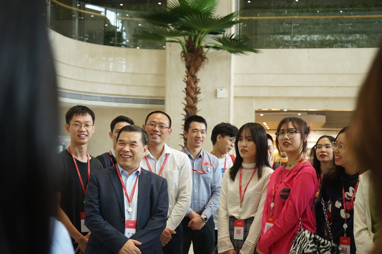 04级校友吕丹凤陪同参观了公司科技展厅,并向母校的领导老师们介绍了视源股份在技术领域发展的现状和公司的福利导航,焦方太对视源股份创新进取的企业精神和独特的企业管理文化表示赞赏。他还表示,母校为校友们取得的成就感到骄傲,科技领域有着广阔的发展前景,祝愿校友们取得更大的进步。焦方太一行还与就职视源股份的校友以及黄埔校友会校友围绕智慧教育、人才培养、社会服务和人文交流等领域的进行交流探讨。