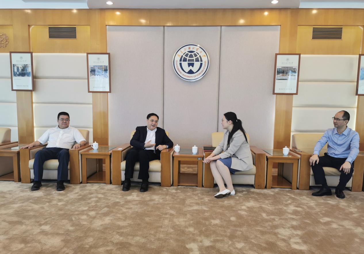 校长石佑启在北校区迎宾厅会见黄埔校友会名誉会长庄铧、会长陈伟江,双方围绕55周年校庆、校园建设、校企合作等主题进行交流。党办、校办,资产管理处、校友事务与合作发展处相关负责人等参加会谈。