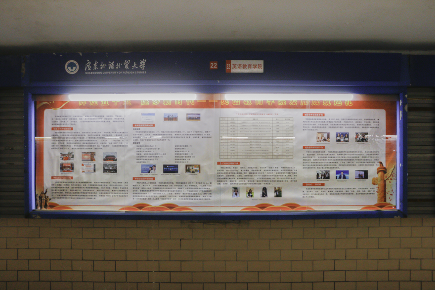 组织评委对各参评单位宣传栏进行评分,国际商务英语学院、英语语言文化学院、国际学院获得一等奖。