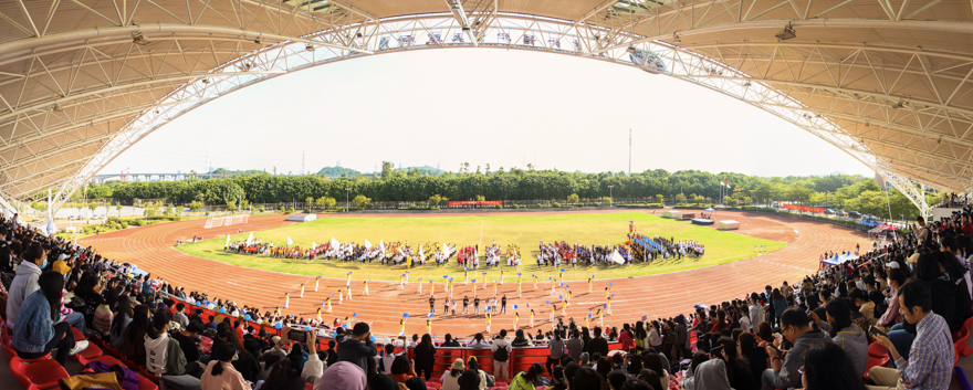 开幕式由校体育运动委员会秘书长、体育部主任李旭武主持。在运动员、裁判员代表宣誓后,本次运动会开幕式迎来了高潮——8位来自不同国家的广外学子共同演唱了原创歌曲《会见晴空》。这首歌曲由30多位广外师生参与创作,演唱者们身着印有“我爱广外”英文字样的上衣,用优美的歌声唱响了致敬所有生命守护者、广外与世界人民携手共同抗“疫”的动人旋律。现场的观众更是心潮澎湃,与表演者们共同沐浴在“汇聚温暖阳光,驱散疫情阴霾”的温暖氛围中。
