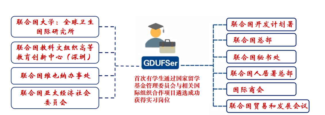 2020年到国际组织实习任职的学生共计17人,较2019年增加2人,接收学生实习任职的国际组织由2019年的6个增加至10个。实习的国际组织机构包括联合国开发计划署、联合国秘书处、联合国人居署、国际商会、联合国亚太经济社会委员会等。2020年福利导航