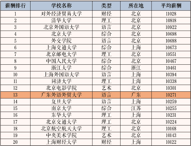 毕业生毕业一年后平均薪酬为10271元,排全国第13位,广东省第1位。