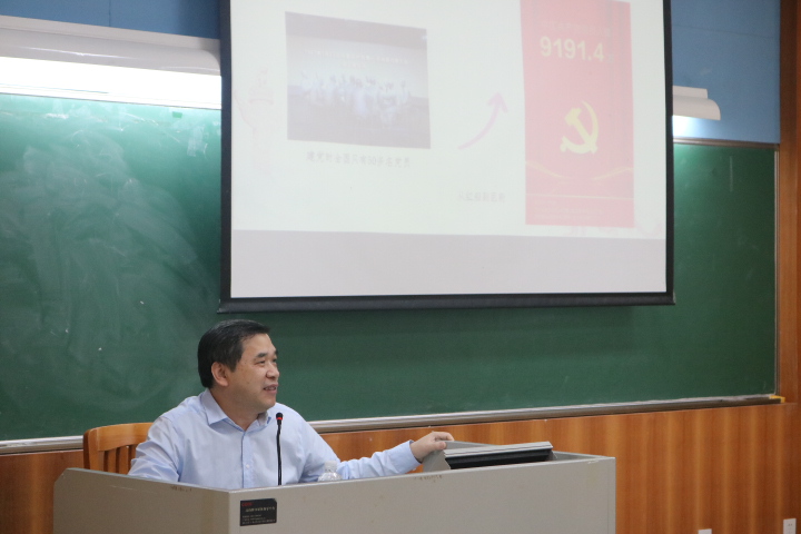 本网讯 为贯彻落实习近平总书记在党史学习教育动员大会上重要讲话精神,深入开展党史学习教育,引导师生党员学党史、悟思想、办实事、开新局,同时进一步加强教职工理论学习,4月15日下午,在七教107室,百年党史宣讲团专家,校党委常委、副校长焦方太教授为日语语言文化学院、亚非语言文化学院(筹)全体教职工和学生党员代表作党史学习专题辅导。