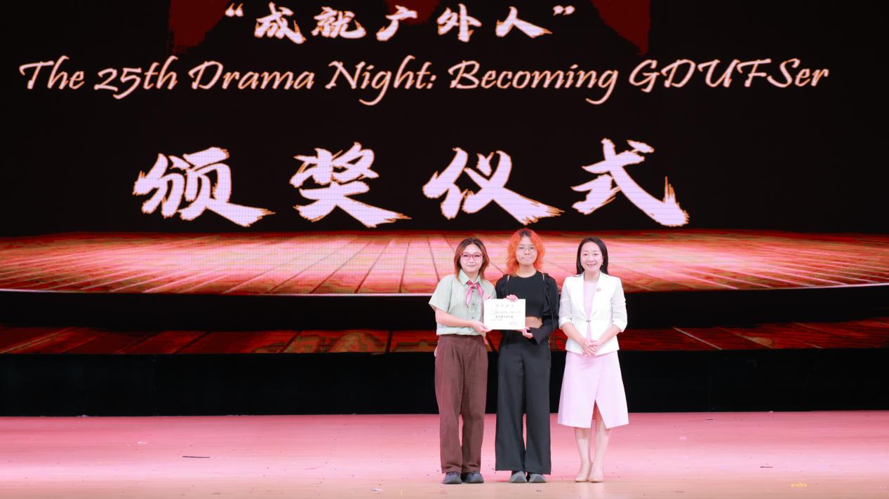 广州大学人文学院戏剧系的张蕾老师在点评环节中指出,同学们在演绎先辈们在艰苦条件下为学科和专业开拓进取的精神内核时,并非简单复刻历史,而是以当代青年的视角,与先辈进行深刻对话,情感真挚,理解深切。更令人赞叹的是,同学们展现了高超的戏剧理解力和表演才华。从导演、编剧到幕后的灯光、舞美、服化道和后勤团队,以及与表演严丝合缝的音效细节,无不凸显了强大的团队协作能力,令人由衷敬佩。这场盛宴充分展现了广外学子的全面素养与蓬勃朝气。Harmonia剧组获最佳剧目一等奖,学子刘秀婷获最佳剧本奖,学子祝浚霖、李莹雨、谭智添获最佳主角等。
