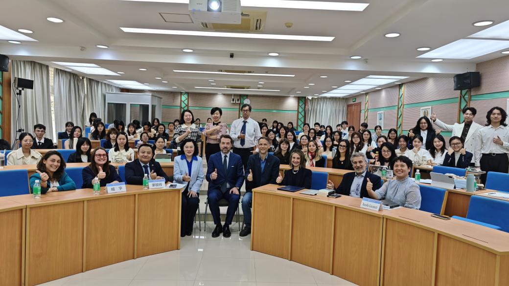 值得一提的是,本次开幕式全程翻译由本校意大利语专业大四学生负责,他们流畅的双语转换、精准的语义传达保障了活动顺利开展,得到了总领事的称赞。