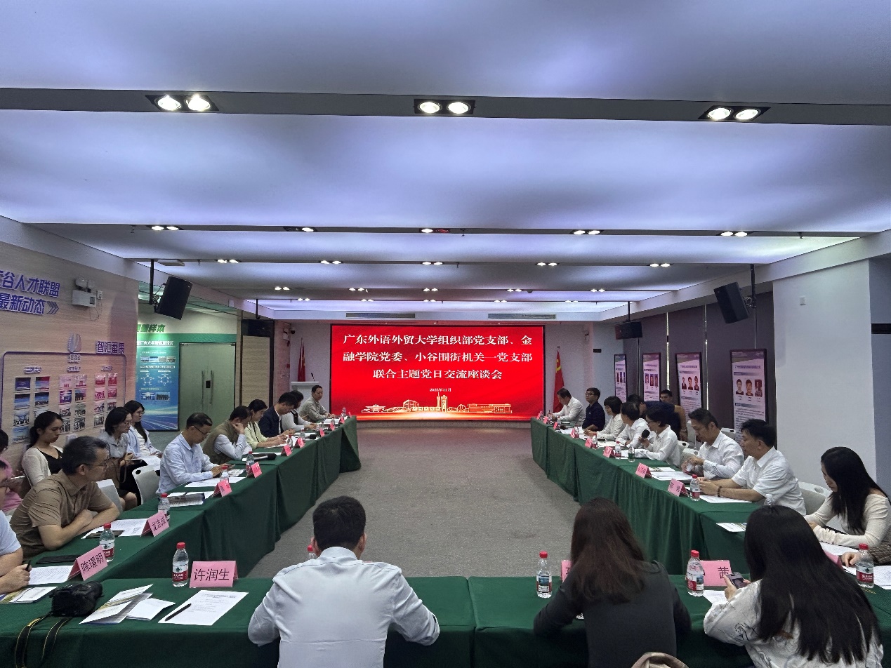 党委常委、组织部部长黄秀娟,金融学院党委书记徐昶斌,大学城管委会副主任、小谷围街党工委副书记、街道办事处主任任树兵,小谷围街党工委委员陈丽媚等出席座谈交流。
