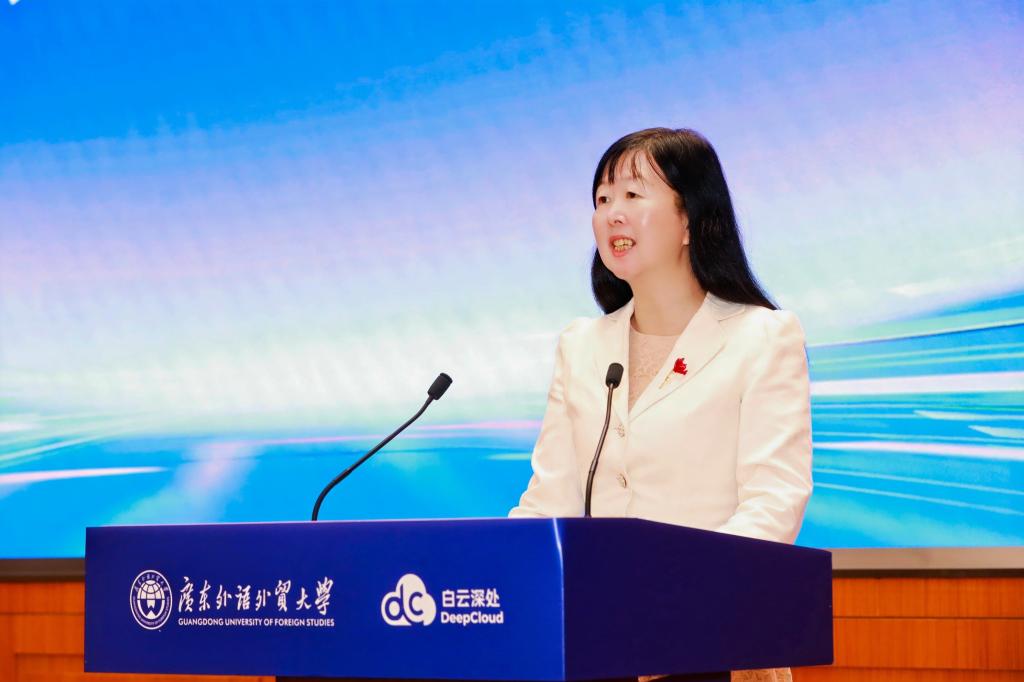 闭幕式上,广外研究生院院长、未来人文与中外文明交流互鉴研究院院长张欣教授致辞,她表示,“白云深处”的发布并非终点,而是更为壮丽的开始,是一场“永不落幕”的探索与创造。她指出,广外与聂珍钊教授团队已在AI与文学教育融合领域实现破冰,未来需要学界同仁以思想为舟、实践为桨,共同探索深水区。她期待平台能成长为一片生生不息的人文森林,让冰冷算法与温热诗心相遇相融,用前沿科技守护古老诗魂,书写智能时代闪耀人性光辉的教育新篇章。
